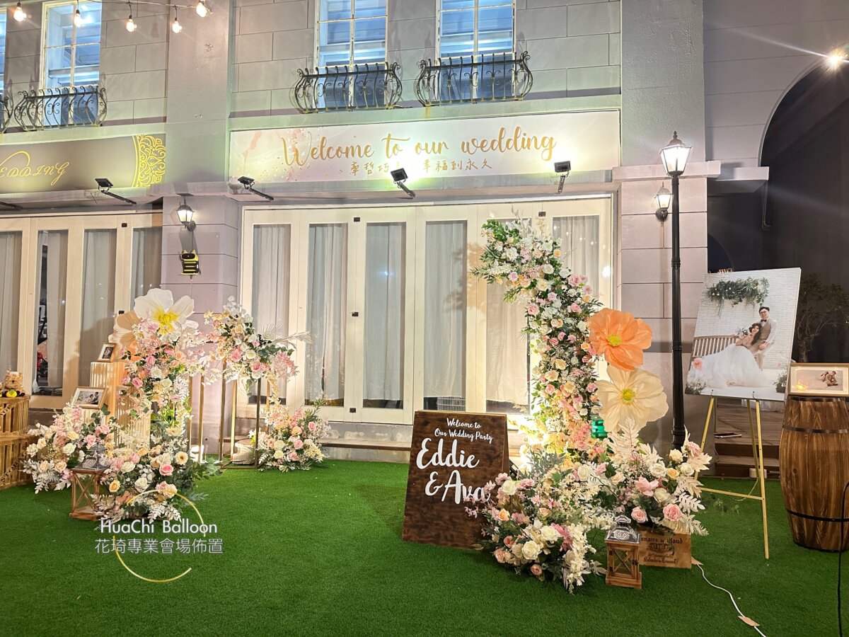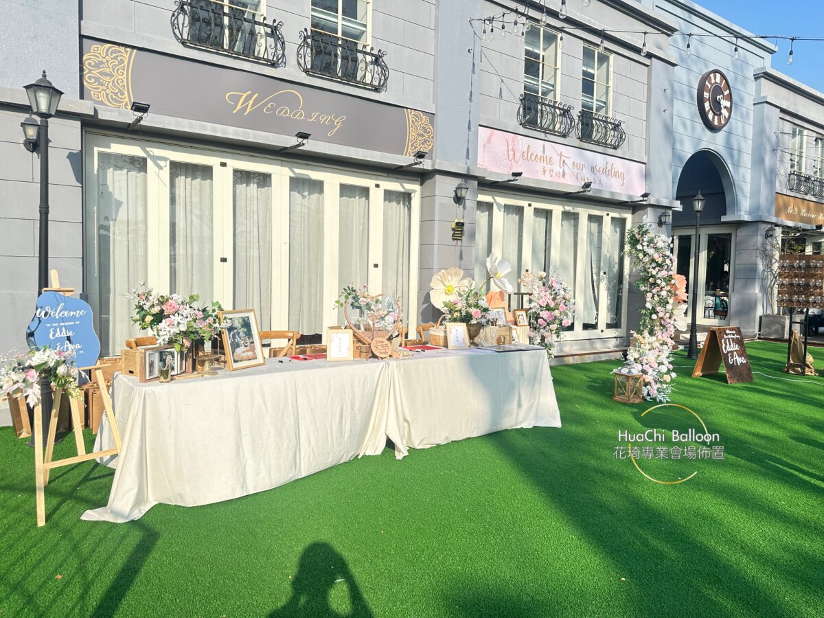 完整規劃拍照區、迎賓打卡區、收禮桌與證婚拱門,