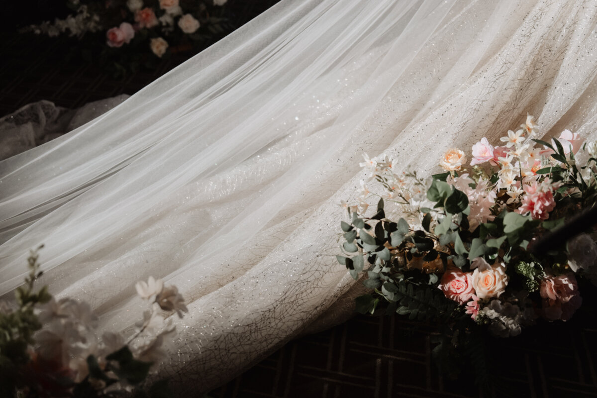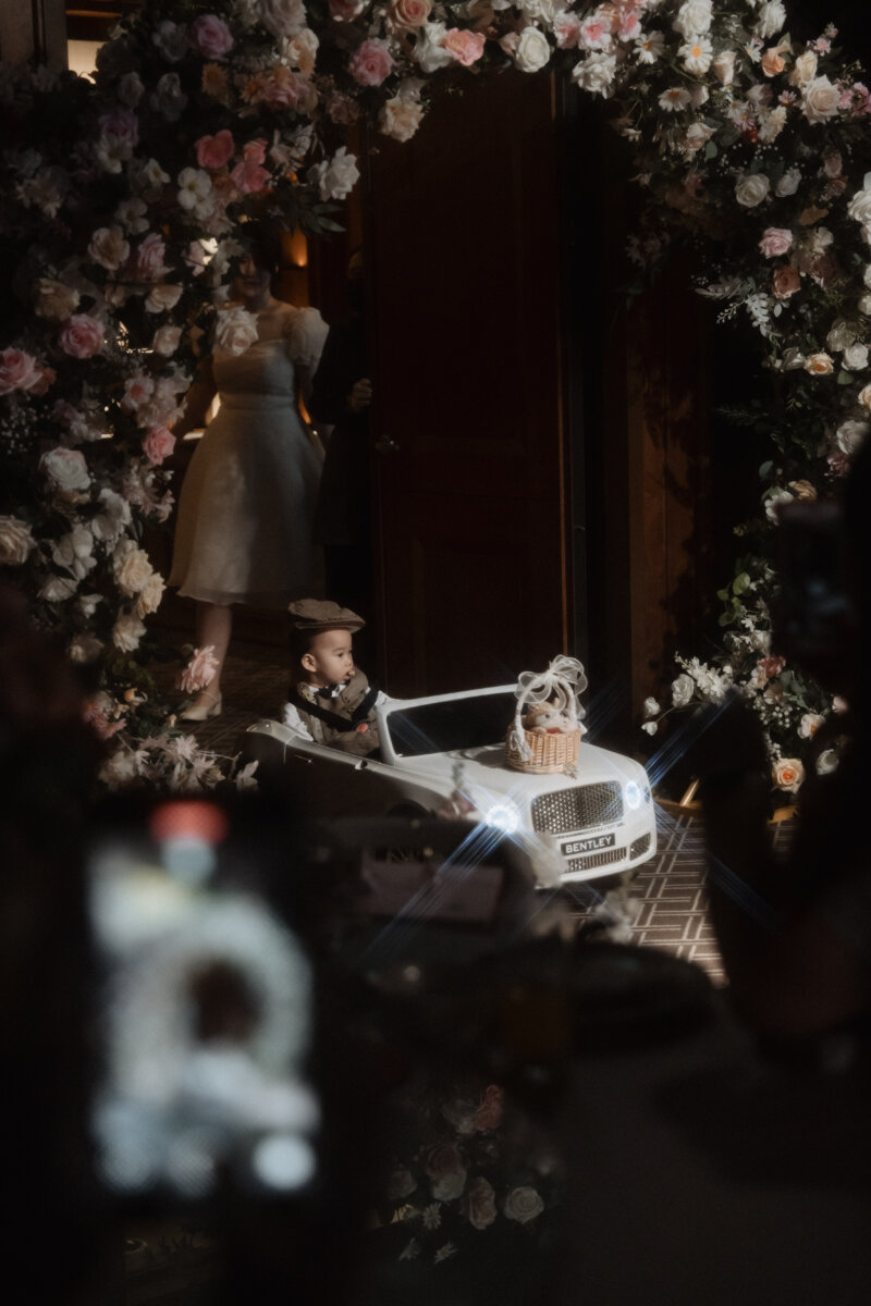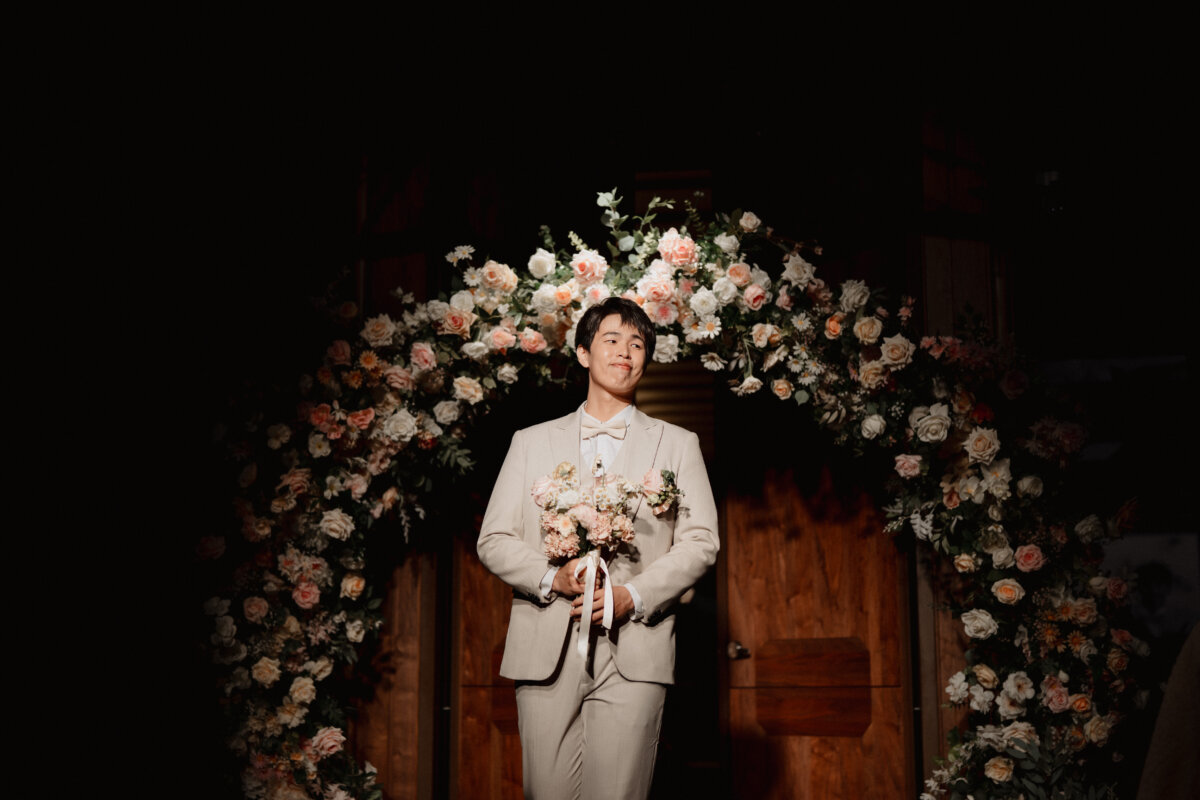 充滿花藝層次的入場拱門,讓新娘進場宛如走進花叢,展現柔美與典雅。