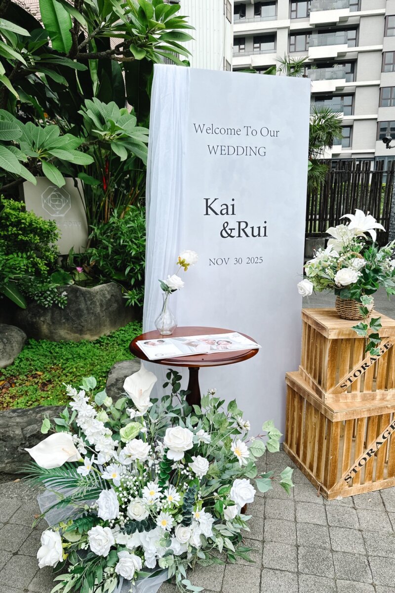 搭配木質道具與迎賓板,讓賓客一入場就感受到清新自然的儀式感。
